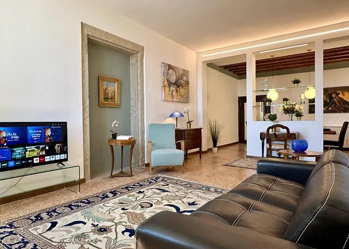 Apartmán Da Mosto Palace Prestige je vzdálen téměř 1 km od Bazilika di San Giovanni e Paolo. V tomto apartmánu je 2 ložnic a 2 koupelen.